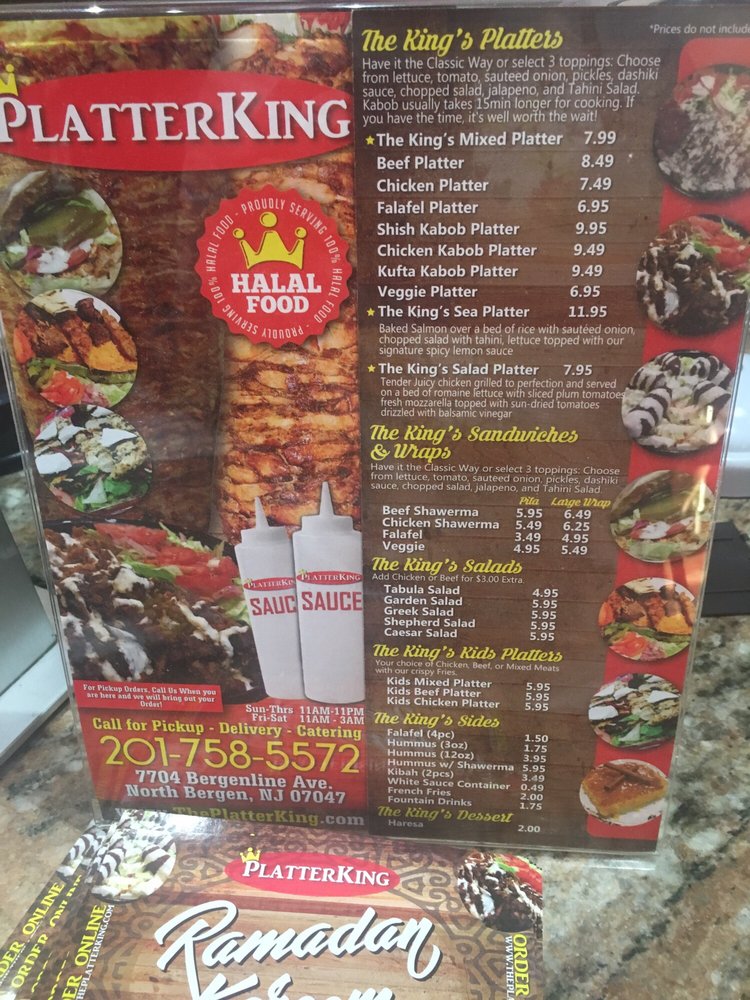 Introducing Platter King, a Mediterranean and halal restaurant located in North Bergen, NJ. Offering a diverse menu with options like The King's Mixed Platter, Beef Shawarma, and Greek Salad, Platter King caters to a variety of tastes. Customers rave about the generous portion sizes, fresh ingredients, and friendly service. Highlights include the flavorful Beef Shawarma and the satisfying Chicken Kabob Wrap. The restaurant also offers delivery, takeout, and catering services, making it a convenient choice for any dining occasion. With a casual atmosphere and gender-neutral restrooms, Platter King is a welcoming spot for families, groups, and solo diners alike. For a delicious taste of Mediterranean cuisine in North Bergen, Platter King is a top choice.